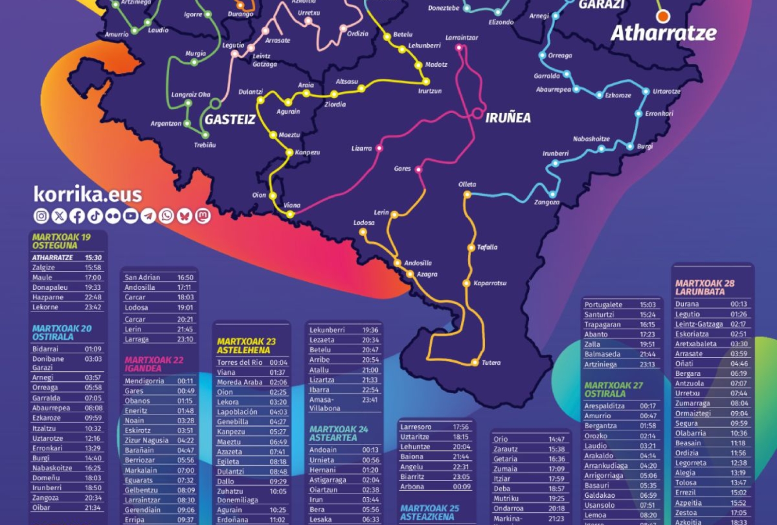 Ikastolako ekimenez gain, Korrikan parte hartzeko aukera ugari izango ditugu datozen 11 egunetan. Zuen eskura jarri nahi ditugu mapa, egitarau eta kartelak.