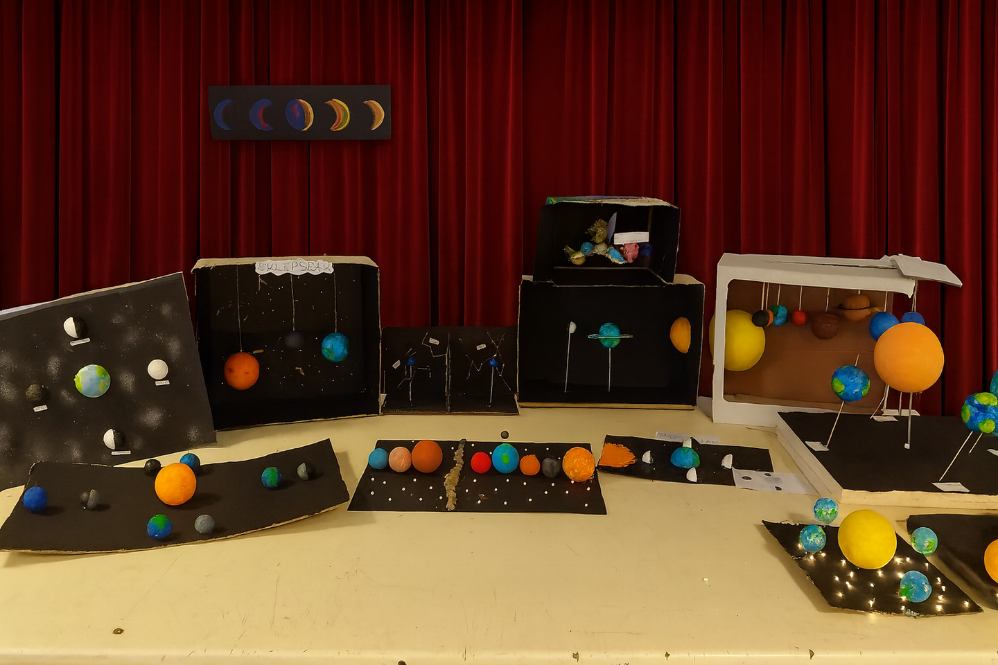 DBH 1eko ikasleek Unibertsoa landu dugu ebaluazio honetan Natur Zientzietan, eta astro, planeta eta izarrak irudikatzeko maketak eginez eman diogu amaiera ebaluazioari. Erakusketa txiki bat antolatu dugu egindako lanekin.