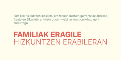 Gurasoak funtsezkoak zarete zuen seme-alaben euskararen ibilbidean, eta horri buruzko lanketa dugu martxan. Apirilaren 14an Ategorrietan elkartuko gara guraso eta langileok, 17:00etan, Paula Casaresen hitzaldiaz eta euskararen erabilera hobetzeko egin dezakegunaz hitz egiteko. Hitzaldia ikusi ez bazenuen, hemen duzu ikusi eta lanketan parte hartzeko aukera! Guztion arteko lanketa ezinbestekoa da, beraz, parte hartu ezazue!