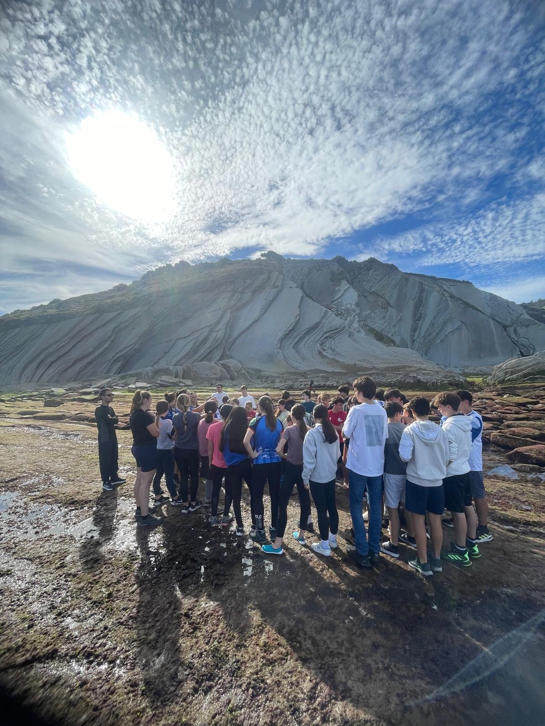 DBH 4-ko Biologia eta Geologiako ikasleok Zumaiako Flyschak aztertzera joan ginen asteartean, Euskal Herriko geologiari eta marearteko zabalguneko bizidunei buruzko alderdi interesgarriak zuzenean ikustera. Eguraldi bikaina izan genuen gainera, eta Ubillos jauregian azalpen txiki batzuk entzun ondoren Flyschaz bertatik bertara gozatu genuen!