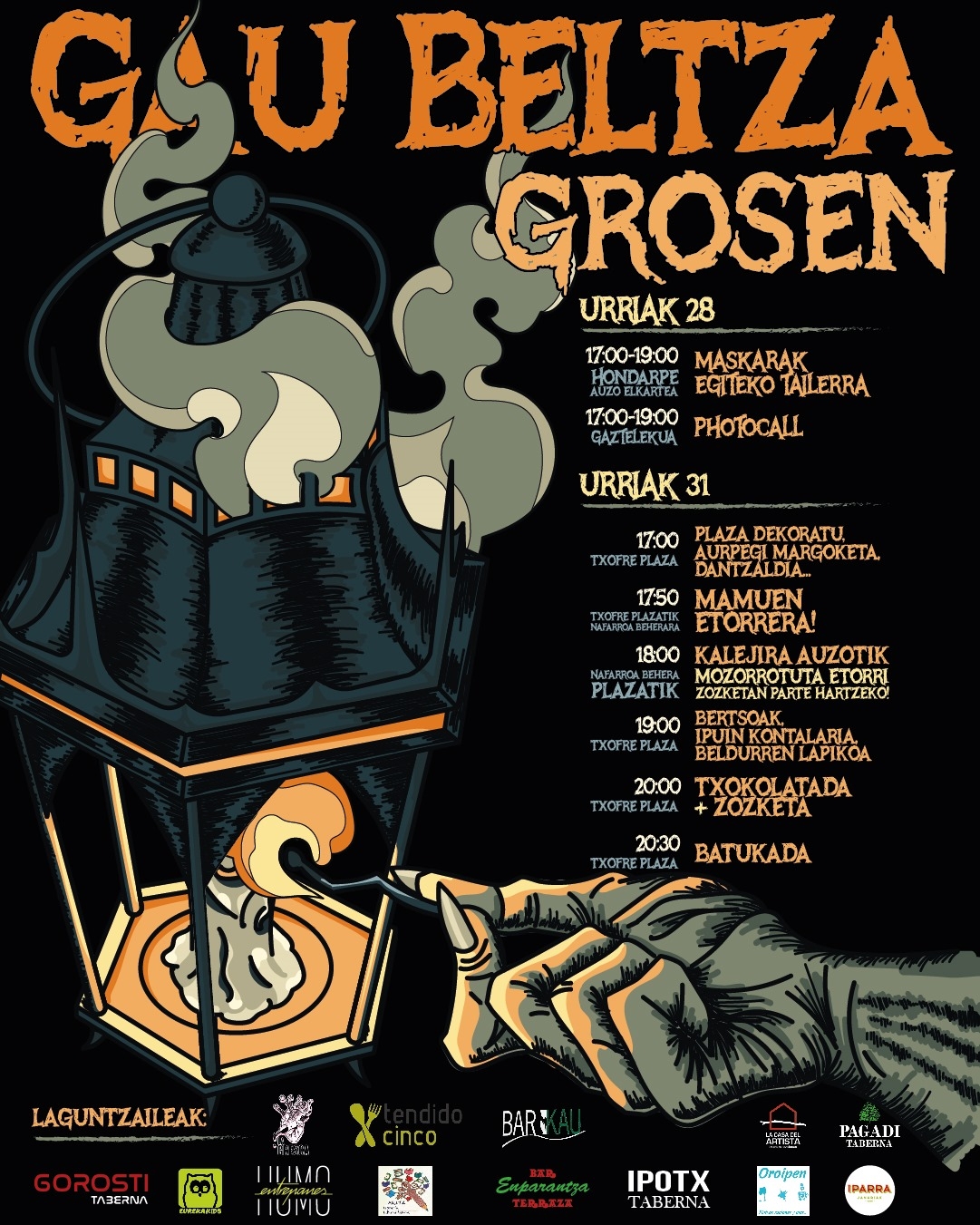 Hurrengo ostiralean dugu Gau Beltza, eta Groseko hainbat eragilek festarako egitaraua prestatu dute elkarlanean. Zurriola Ikastolako Gurasoen Jai Batzordeak ere parte hartu du prestaketa lanetan. Hortaz, badakizue, hurrengo ostiralean, izarak jantzi eta mamu zaharrak berpiztu. Bide batez, gogoratu hurrengo ostirala (urriak 31) jai-eguna izango dugula Ikastolan.