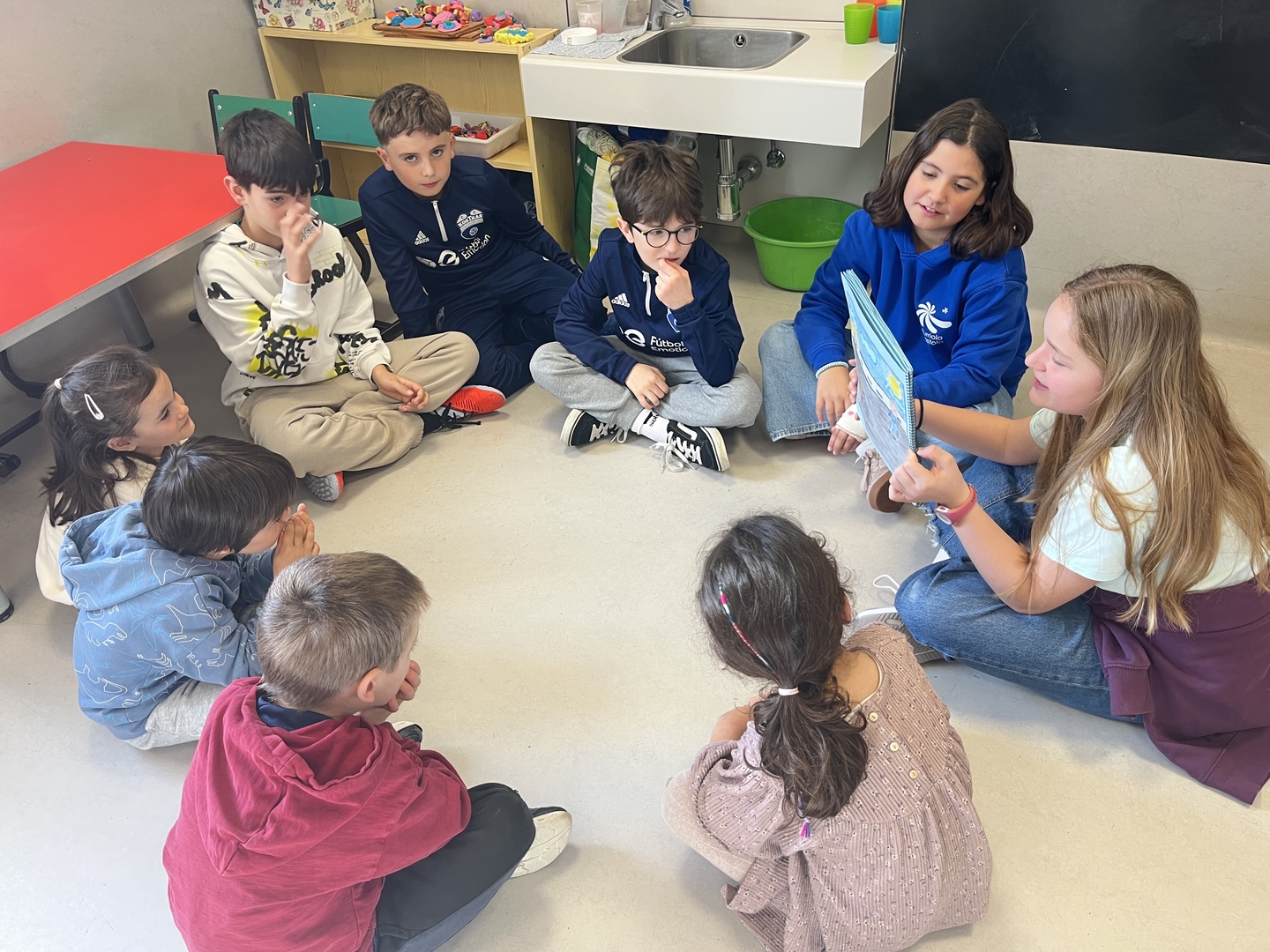 LH 5eko lagunek ipuinak sortu eta ilustratu ditugu hiruhileko honetan, eta gaur Soroara hurbildu gara, ipuinak HH5ekoei kontatzera. Adi-adi entzun dituzte txikitxoek gure istorioak!